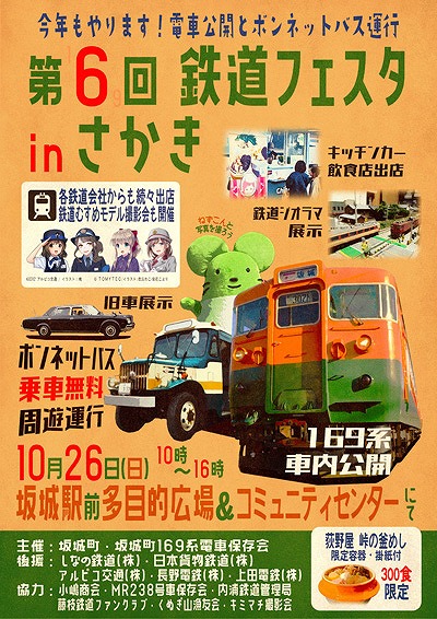先日(10月26日)、あいにくの雨模様となりましたが坂城駅前多目的広場と坂城町中心市街地コミュニティーセンターの2会場で「鉄道フェスタ in さかき」を開催しました。 今回で6回目の開催となります。