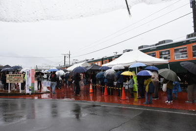 ▼3枚目の写真 「さかき鉄道フェスタ」限定硬券場所には開会前から長蛇の列ができていました。(用意していた400枚は無くなりました。)