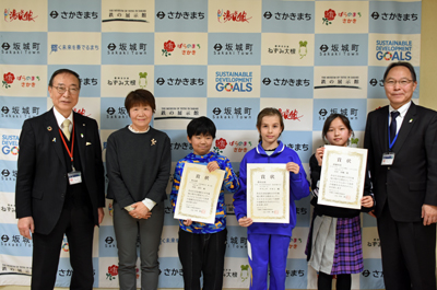 そのうち、表彰式には「最優秀賞」「町長賞」「教育長賞」を受賞した3名が来庁されました。
