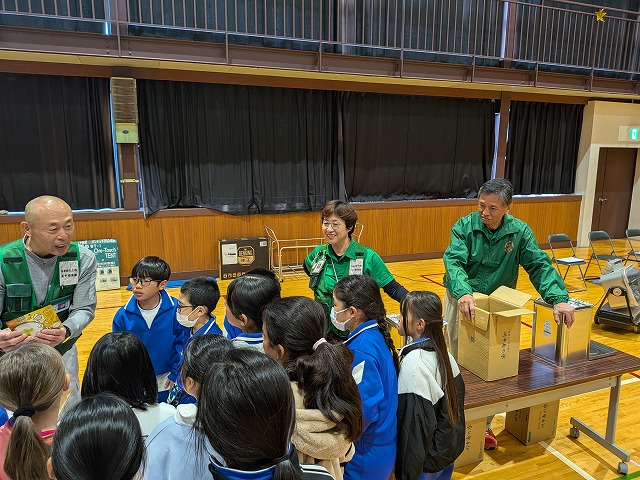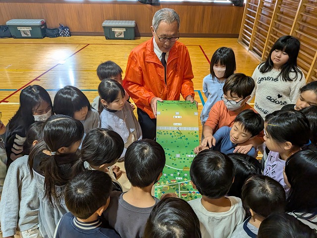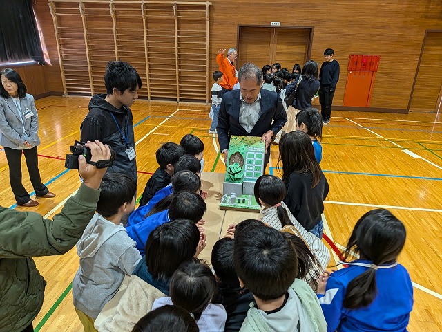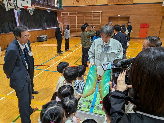 親しみやすいキャラクターや、災害の模型を利用した実演に、児童たちからは「わかりやすい」と声が上がり、積極的に学習に取り組む姿が見られました。
