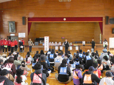 この大会は、教育委員会と坂城町青少年を育む町民会議が主催し、毎年開催地区を変えて行っており、例年大勢の皆さんが参加しています。今回は村上地区において、27地区の育成会長および千曲交通安全協会坂城支部村上分会の皆さんの協力を得て開催しました。