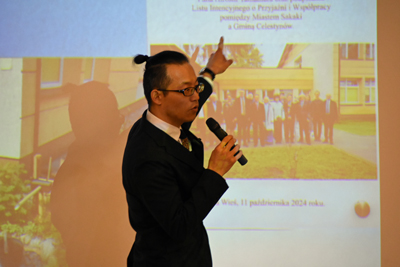 2024年10月に、町とポーランドツェレスティヌフ郡と坂城町国際交流協会、ツェレスティヌフ郡国際交流協会の4者で「フレンドシップ協定に関する合意書」に調印し、その橋渡し役を務めていただいたワルシャワ日本語学校の坂本龍太朗さんが現在、講演会活動を行っています。